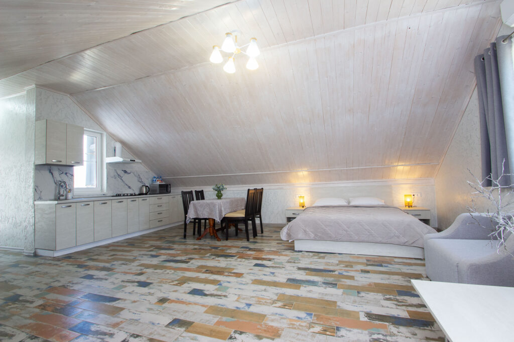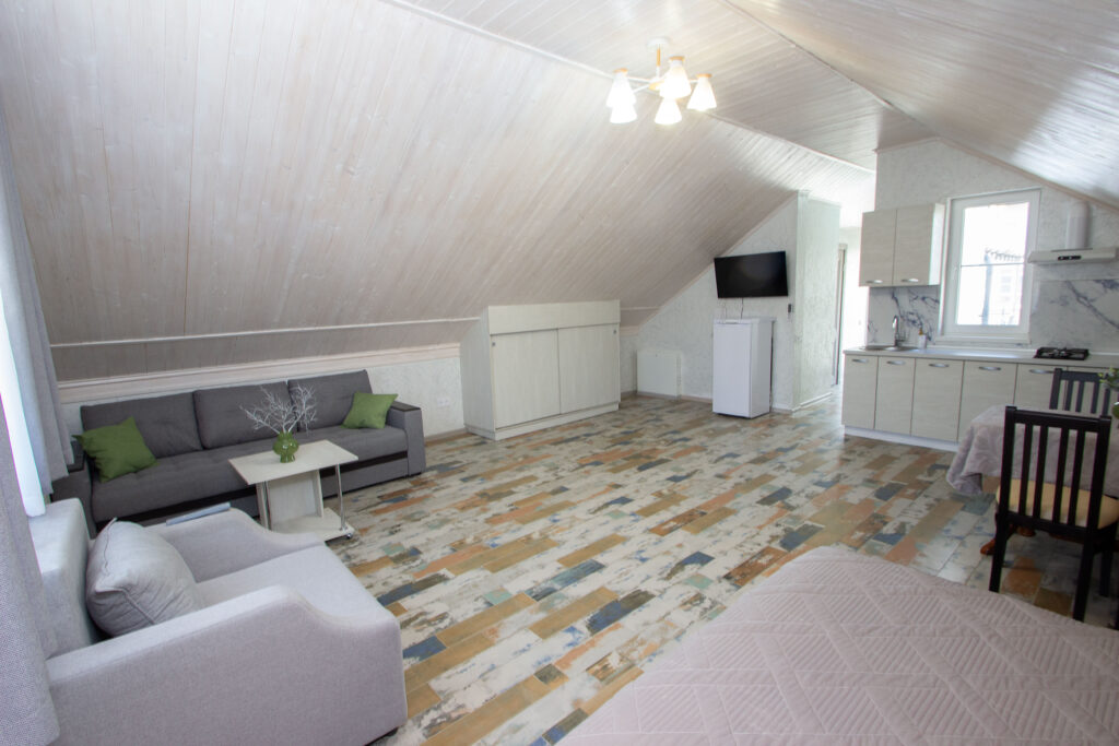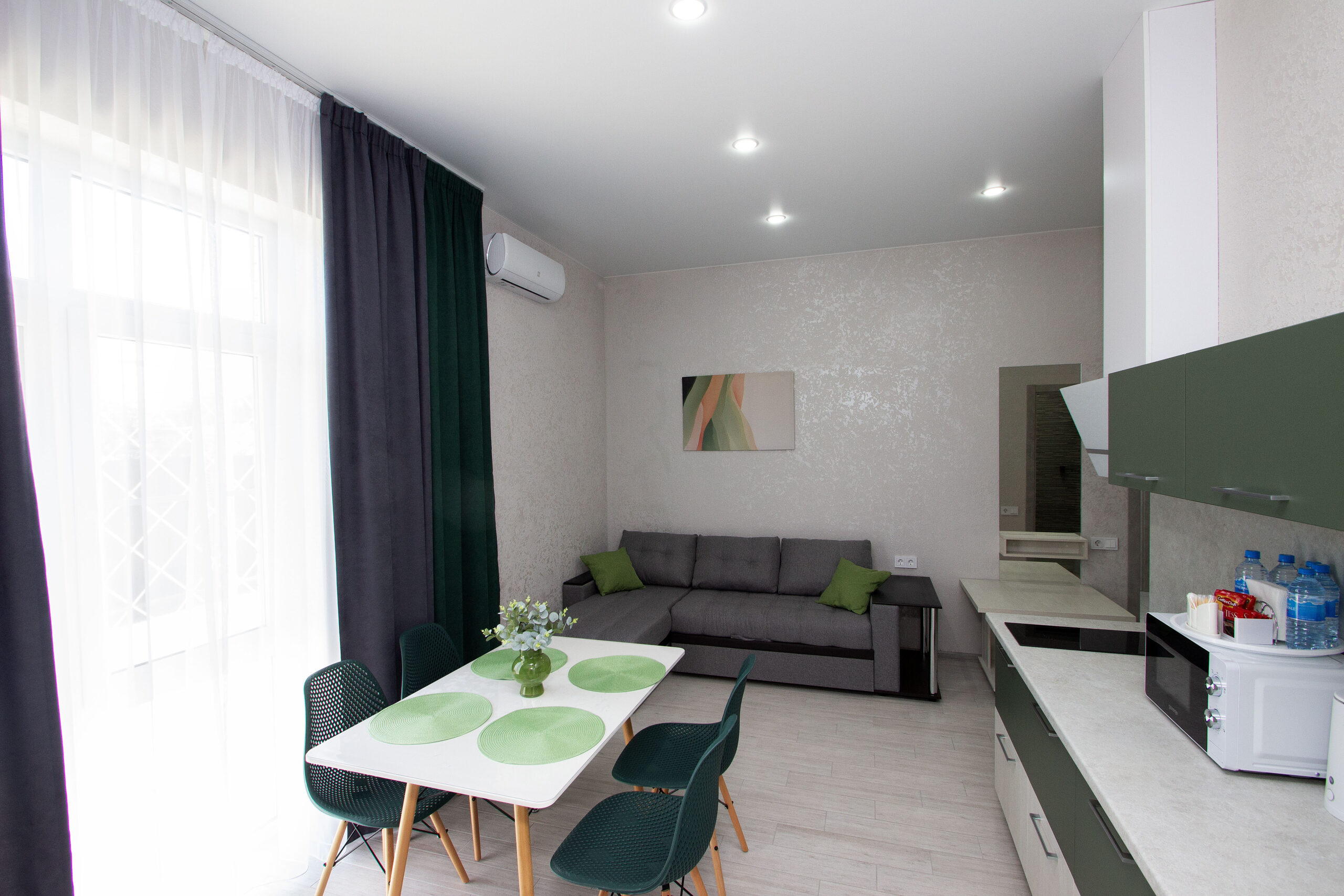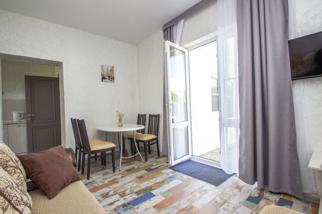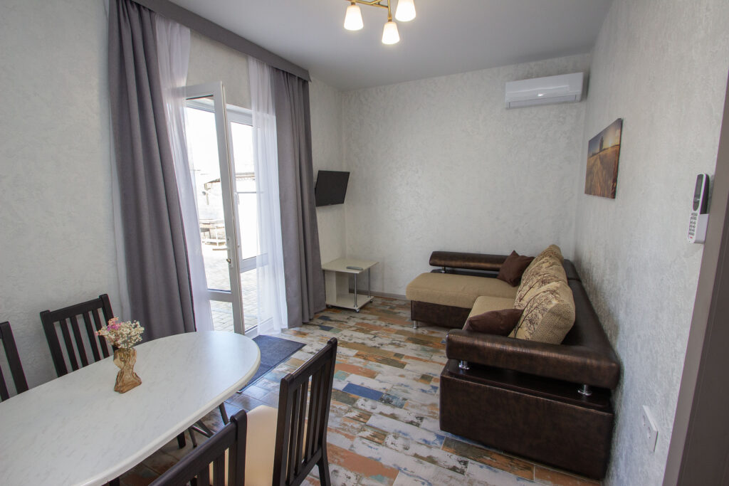 Каждый номер оформлен в светлых тонах с элементами средиземноморской стилистики, создавая атмосферу домашнего тепла и гостеприимства. Просторные комнаты оснащены современной мебелью, кондиционерами, телевизорами и бесплатным Wi-Fi. Уютная кухня позволит приготовить блюда по вашему вкусу, а завтрак, включённый в стоимость проживания, подарит вам бодрость и энергию на весь день.
