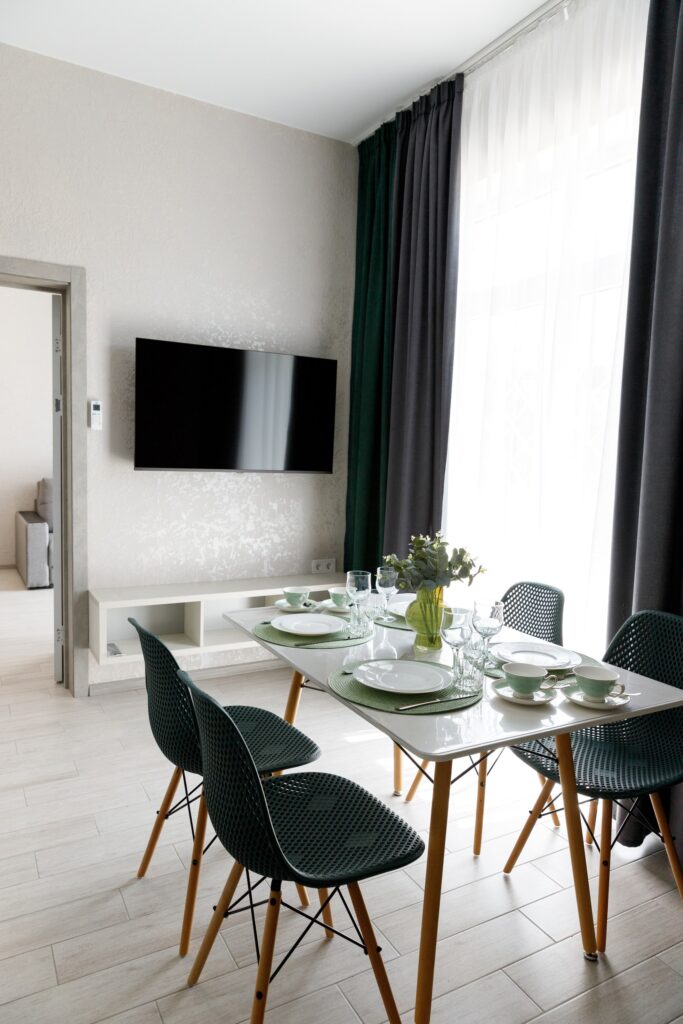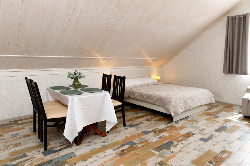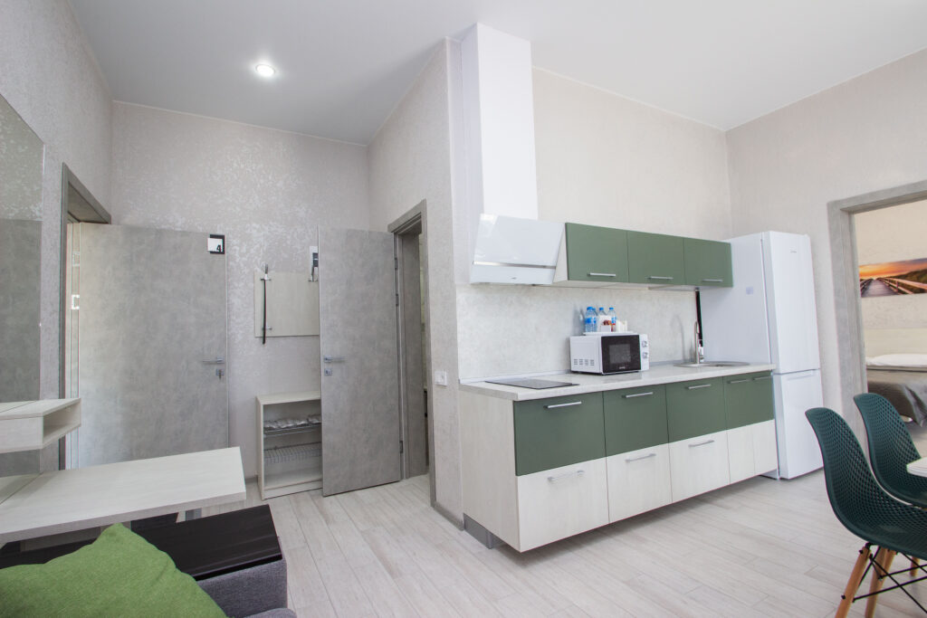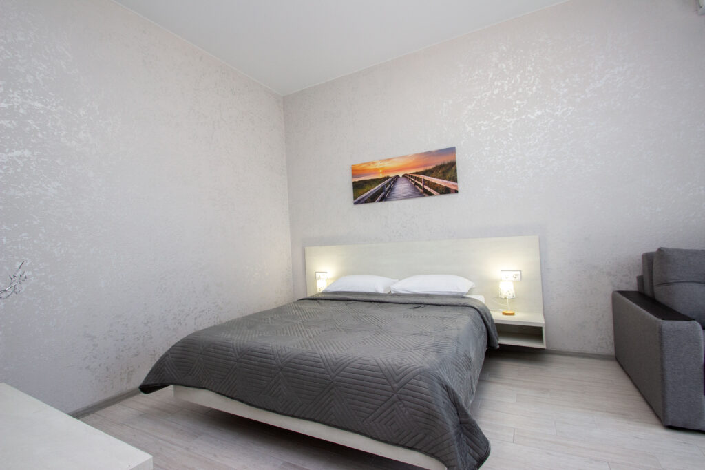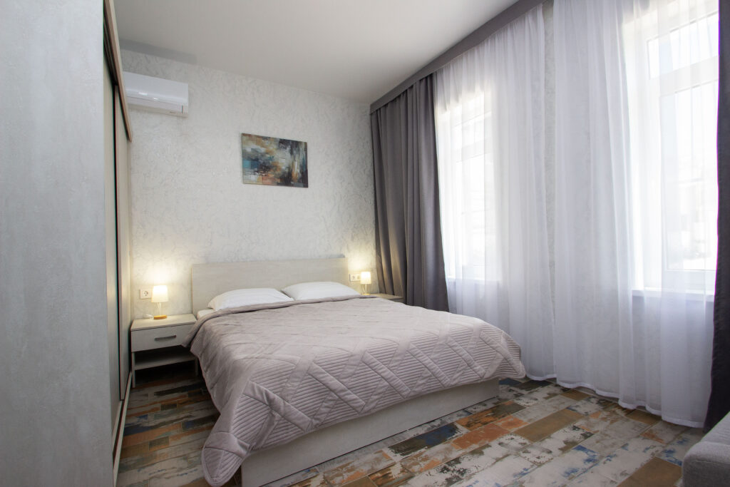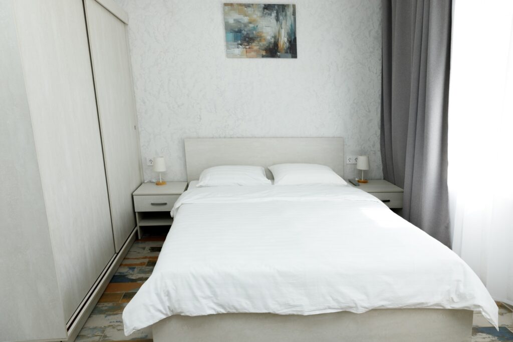 Каждый номер оформлен в светлых тонах с элементами средиземноморской стилистики, создавая атмосферу домашнего тепла и гостеприимства. Просторные комнаты оснащены современной мебелью, кондиционерами, телевизорами и бесплатным Wi-Fi. Уютная кухня позволит приготовить блюда по вашему вкусу, а завтрак, включённый в стоимость проживания, подарит вам бодрость и энергию на весь день.