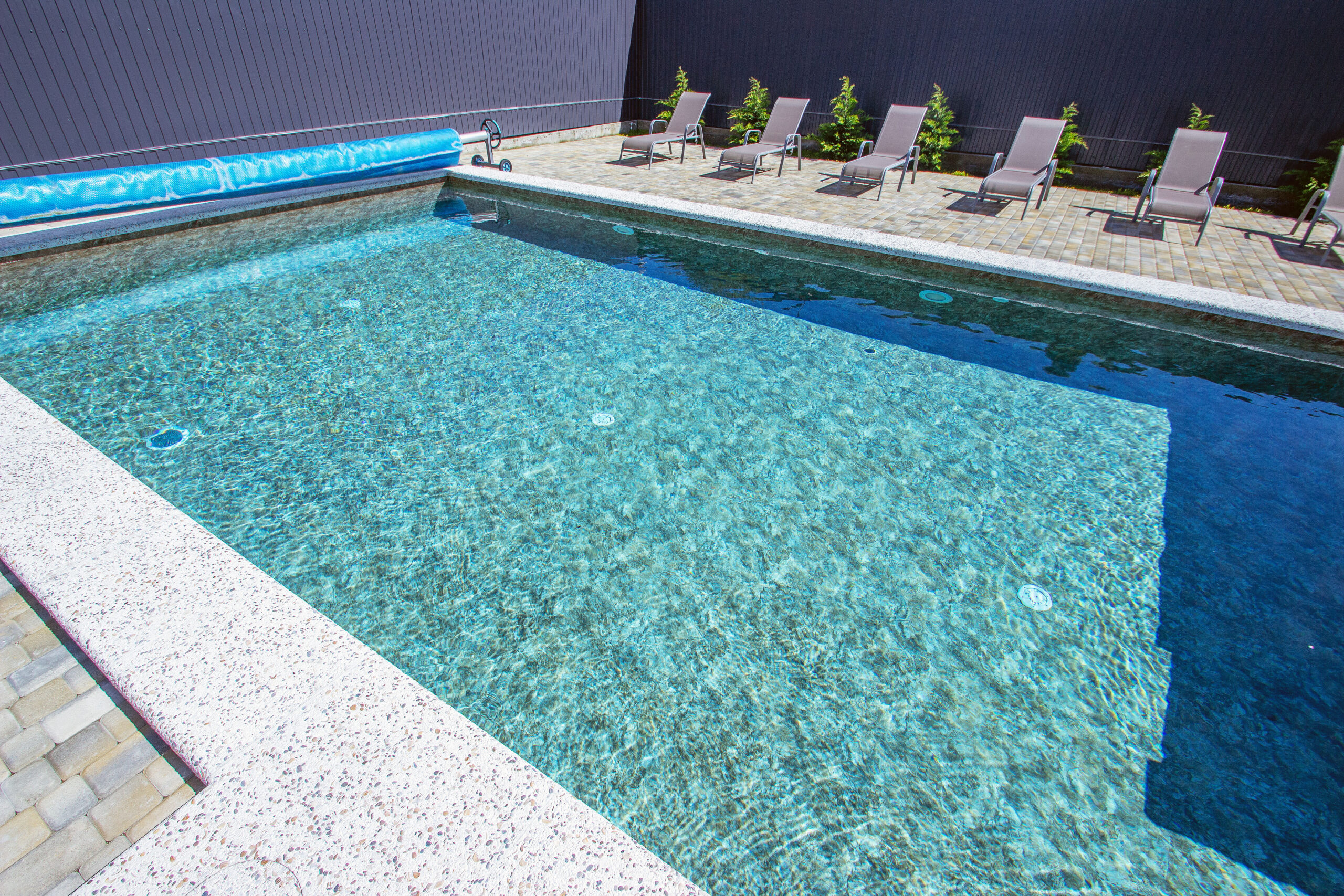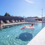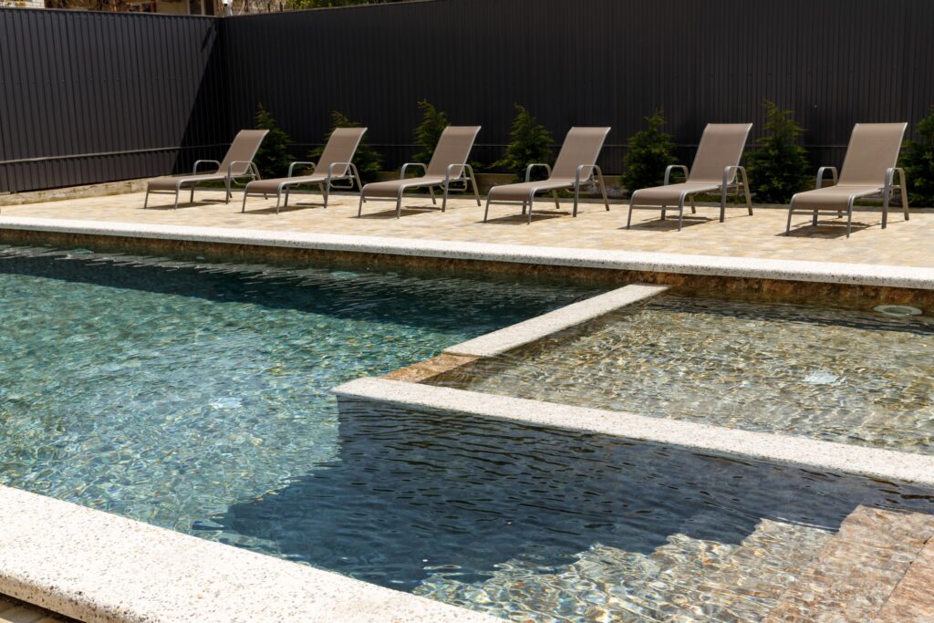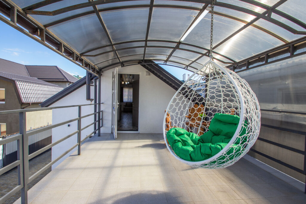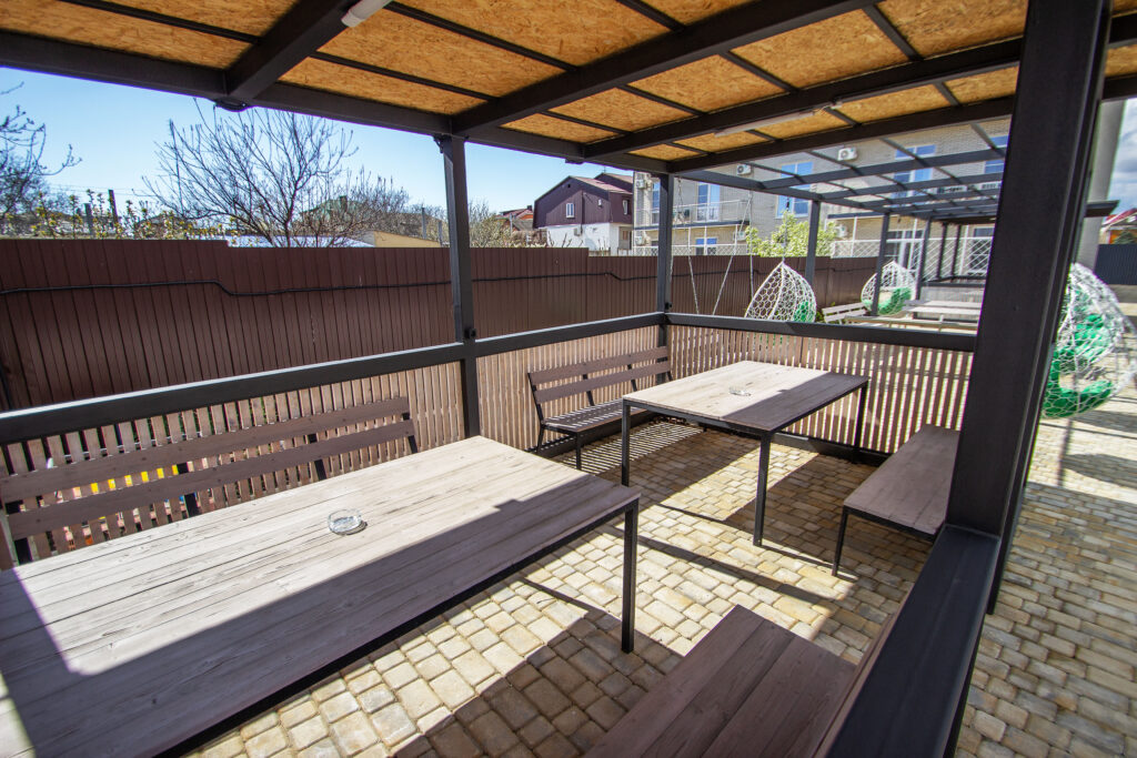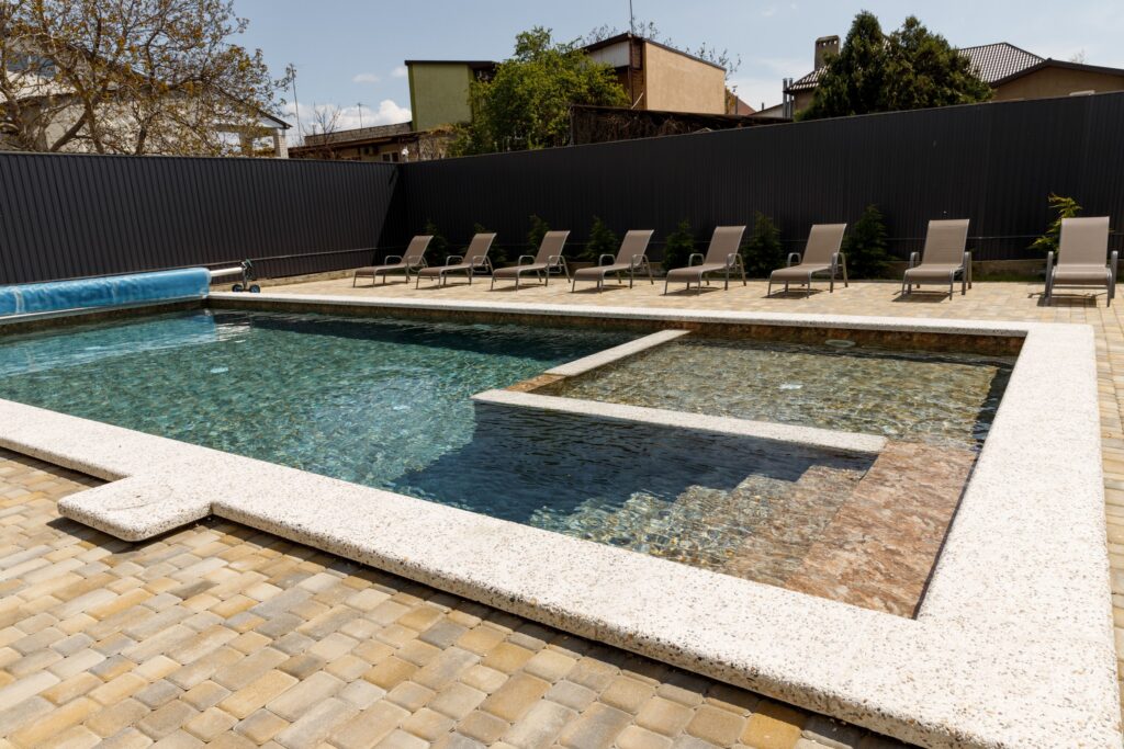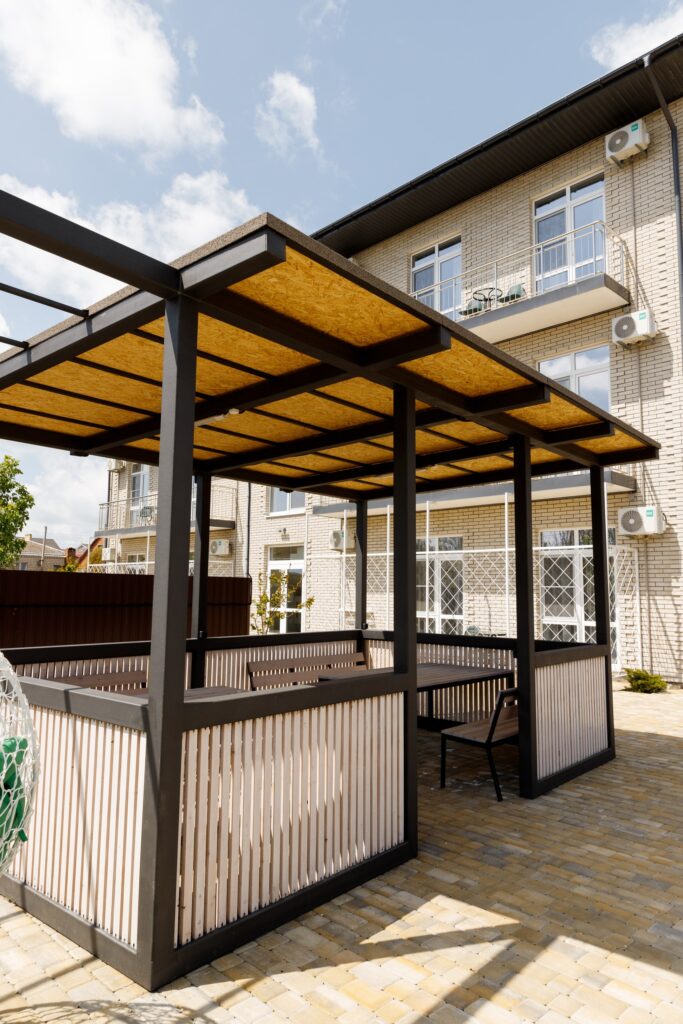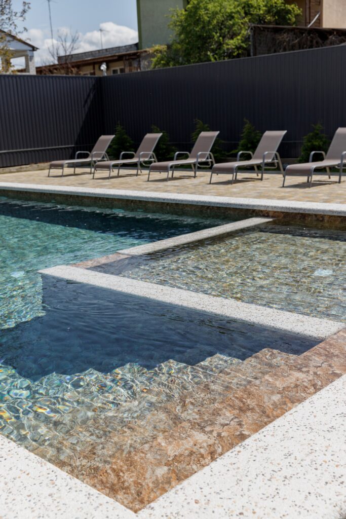 Особенностью является просторный бассейн, окружённый зелёной зоной отдыха. Здесь вы сможете расслабиться в тёплые солнечные дни, освежиться прохладной водой и зарядиться энергией солнца. Для вашего удобства рядом установлены шезлонги, столики и зонтик, чтобы отдых стал комфортным и приятным.