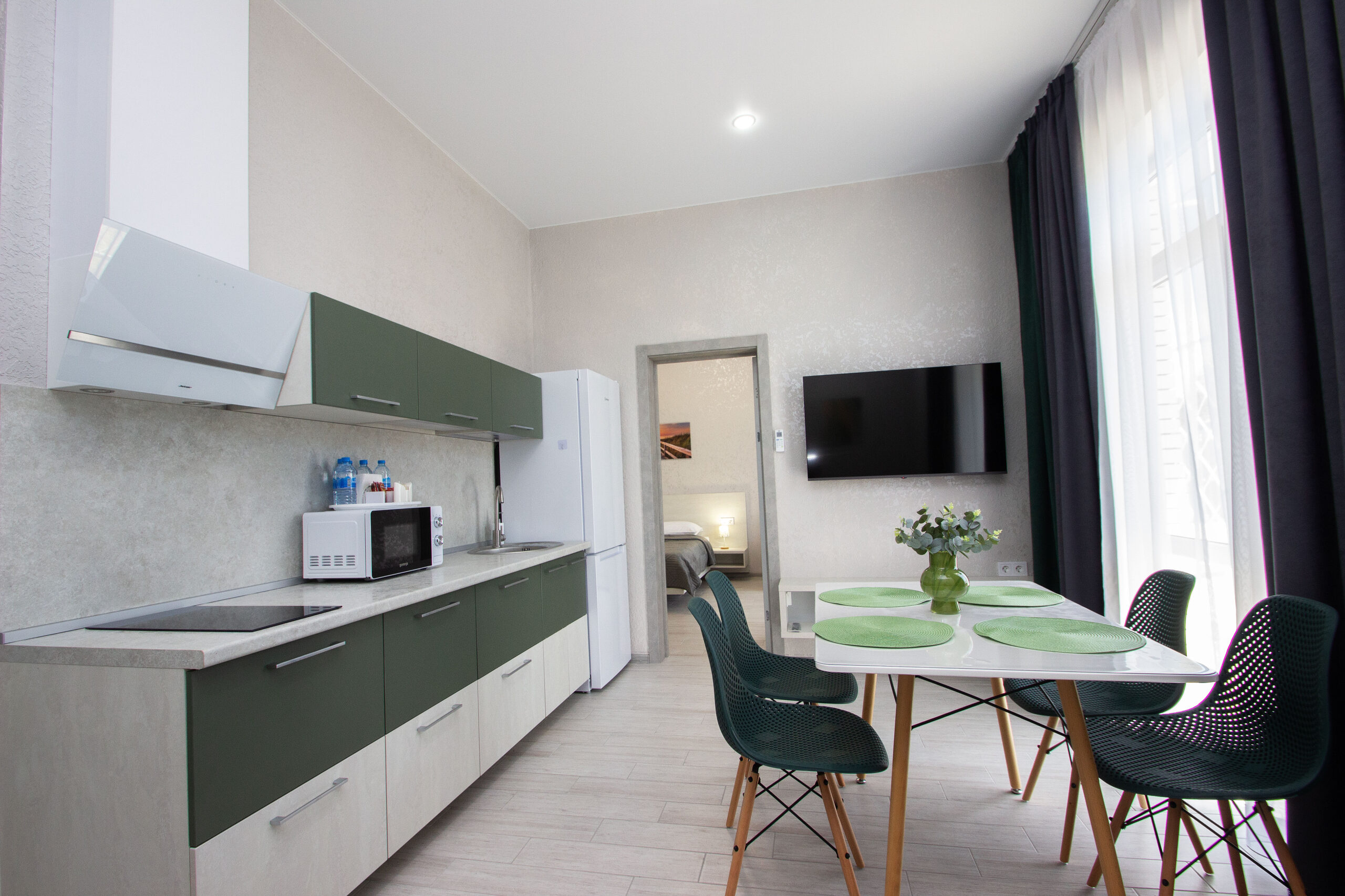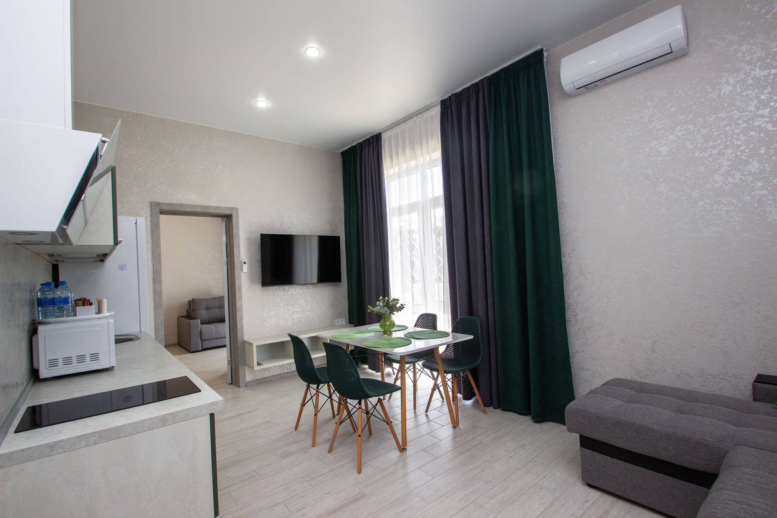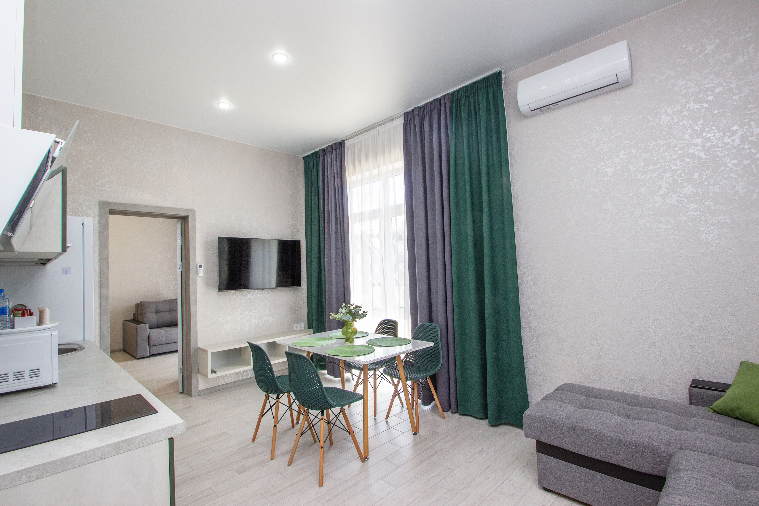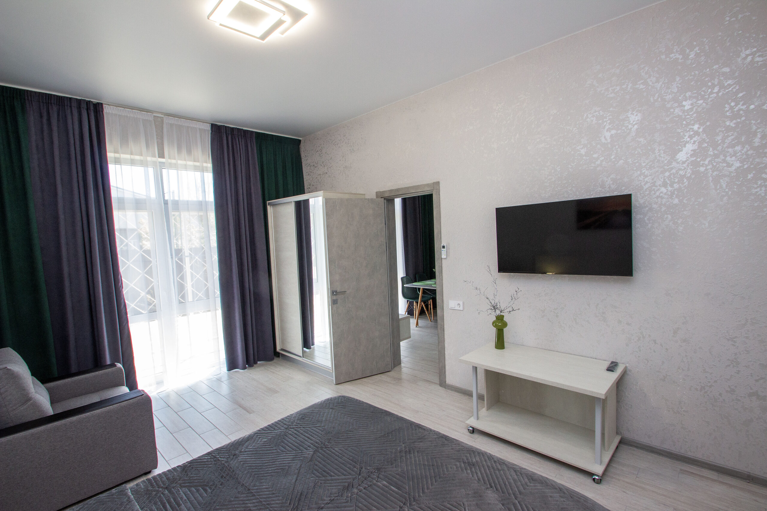 В номере: 2 телевизора +антена на 22 канала+Смарт тв, Сплит система 2 шт, теплый пол.