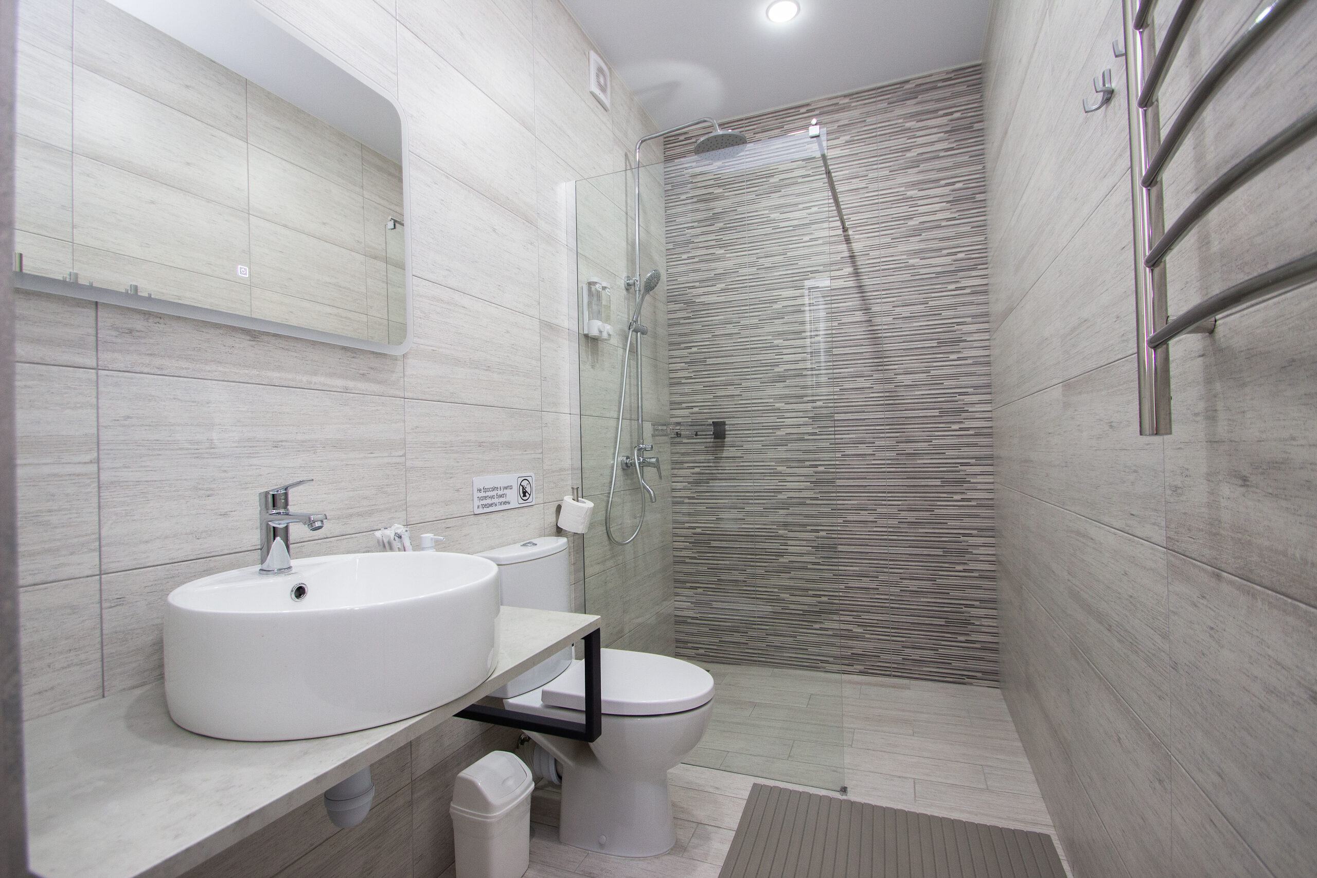 Ванная комната: Тропический душ, зеркало с подсветкой, унитаз.